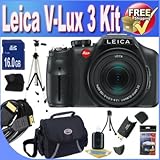 | ✚✚✚ Leica V-LUX 3 CMOS Camera with 12.1MP and 24x Super Telephoto Zoom + 16GB SDHC Class 10 Memory Card + USB Card Reader + Memory Card Wallet + Shock Proof Deluxe Case + Mini HDMI to HDMI Cable + rofessional Full Size Tripod + Accessory Saver Bundle! This Kit Includes!