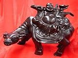 Buddha on Ox represents relaxation and abundance. In Chinese zodiac, Ox is the symbol of Earth Element which produces Metal (wealth). Ox is located in NE position where the 8 White Flying Star resides (8 White Flying Star is in charge of wealth). Buddha on Ox can activate and attract more good chi from Eight White. In addition, according to Chinese astrology 4 Pillar, Ox belongs to Metal Storage which is the powerful potential ability to develop the wealthy chi. This beautiful art craft is carved in one piece of dark brown (almost black) teak wood. It is approx. 14.5" in length, 8.5" in width and 10.5" in height.