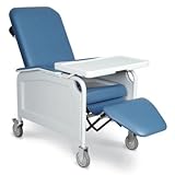 Three Position Lifecare Recliner with Tray Color: Blue Ridge, Style: IV Pole at Right Rear