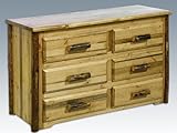 | ✚✚✚ Montana Woodworks Glacier Country 6 - drawer Chest Montana Woodworks Glacier Country 6 - Drawer Chest. Beautiful rustic design, built to last for generations! With a full 6 drawers of handcrafted space, this wonderful Dresser will add elegance to any master bedroom while providing storage for all your essentials and delicates. Constructed using solid pine, edge-glued laminated panels and easy glide drawer slides, the Dresser's heirloom quality design ensures it will last for generations. The one of a kind Glacier Country look is achieved by removing the outer bark while leaving the inner layer. 3 coats of premium grade, clear lacquer are added for the finishing touch. Fully assembled. The Dresser measures 60 w. x 21 d. x 34 h. Note: Log furniture is subject to the natural process of checking or splitting as the wood releases moisture. No compromise on strength, only builds character. Order Today! Please Note: This item is shipped by commercial carrier curbside. Curbside delivery (i.e., liftgate delivery to the curb) is required for this item. Ships in 1 box: 60" x 22" x 35", 209 lbs. Montana Woodworks Glacier Country 6-drawer Chest