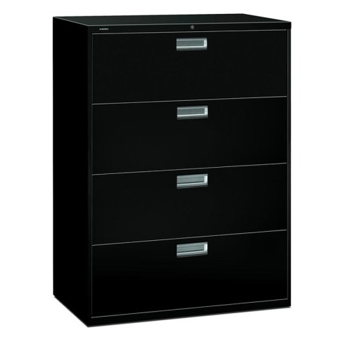 Searching for the best HON 600 Series Standard Lateral File - 42" x 19.25" x 53" - Steel - 4 x File Drawer(s) - Legal, Letter - Interlocking, Leveling Glide, Ball-bearing Suspension, Recessed Handle, Label Holder, Durable - Black; Congratulations! Check the specifications, features and feedback from customer feedback include price controls and information more satisfactory HON 600 Series Standard Lateral File - 42" x 19.25" x 53" - Steel - 4 x File Drawer(s) - Legal, Letter - Interlocking, Leveling Glide, Ball-bearing Suspension, Recessed Handle, Label Holder, Durable - Black product reviews! Lateral file offers exceptional construction with double-walled base construction for maximum rigidity. Baked enamel finish over rust-inhibiting, phosphate pretreatment adds more durability. Telescoping, ball-bearing suspension delivers remarkably smooth drawer operation. Drawers accommodate letter-size or legal-size folders from side-to-side with included adjustable hangrails. Drawers are flush at the top and sides and feature aluminum recessed drawer pulls with a plastic label holder, and drawer extension restraint. Mechanical interlock allows only one drawer to open at a time. Lateral file also offers four adjustable leveling guides for stabilizing; HON One Key interchangeable, core removable locks; and reinforced case steel construction. Lock mechanism secures both sides of drawers.