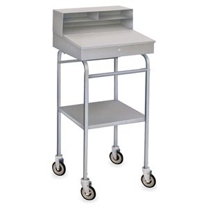 #Mobile Work Center, Stainless Steel, Load Capacity (Lb.) 300, Stainless Steel Construction, Stainless Steel FinishOverall Length (In.) 24, Overall Width (In.) 22-1/2, Overall Height (In.) 49Caster Type (4) Swivel, (2) with BrakesPushIncludes Pen and Pencil Compartments