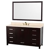 | ✚✚✚ Abingdon 60" Single Bathroom Vanity Set Vanity Top: White Carrera Marble WC-1515-60-M Top Carrera Vanity Top: White Carrera Marble Features: -Single bathroom vanity set.-Available in white carrera marble or ivory marble top.-Nine drawers with fully-extending undermount soft-close slides and two doors with concealed soft-close hinges.-Faucets not included. Includes: -Includes vanity base, vanity top, sink, and coordinating mirror.-Includes drain assemblies and P-traps for easy assembly. Construction: -Constructed of environmentally friendly, zero emissions solid Oak hardwood, engineered to prevent warping and last a lifetime. Color/Finish: -Espresso finish.-Highly water-resistant low V.O.C. sealed finish.-Brushed chrome exterior hardware finish. Assembly Instructions: -Minimal assembly required. Dimensions: -8'' Widespread 3-hole faucet mount.-Vanity dimensions: 61'' W x 21-1/2'' D x 34-7/8'' H to counter.-Mirror dimensions: 56'' W x 1-1/4'' D x 34'' H. Collection: -Abingdon collection. Warranty: -Manufacturer provides two year limited warranty.