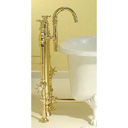 Strom Plumbing Royal Aqueduct Tub Faucet P0699S Super Coated Brass?This Strom Plumbing royal aqueduct standing waste and tub faucet is the perfect complement to your clawfoot bathtub. Replicates the lift and turn waste that was unique to plumbing in the late 1800s. Modern ceramic quarter-turn valves for smooth, drip-free operation. 6-prong handles with porcelain inserts. SPECIFICATIONS: Rough-in centers - 11 inch . Supplies are 3/4 inch IPS. Solid brass construction. Minimum clearance needed from tub lip to wall is 8 inch . No modifications can be made to this set, parts are not sold separately. Center of waste to end of gooseneck measures 9 inch ; center of gooseneck inlet to tip of spout measures 6 inch , 12 gal/min. flow rate at 38PSI.